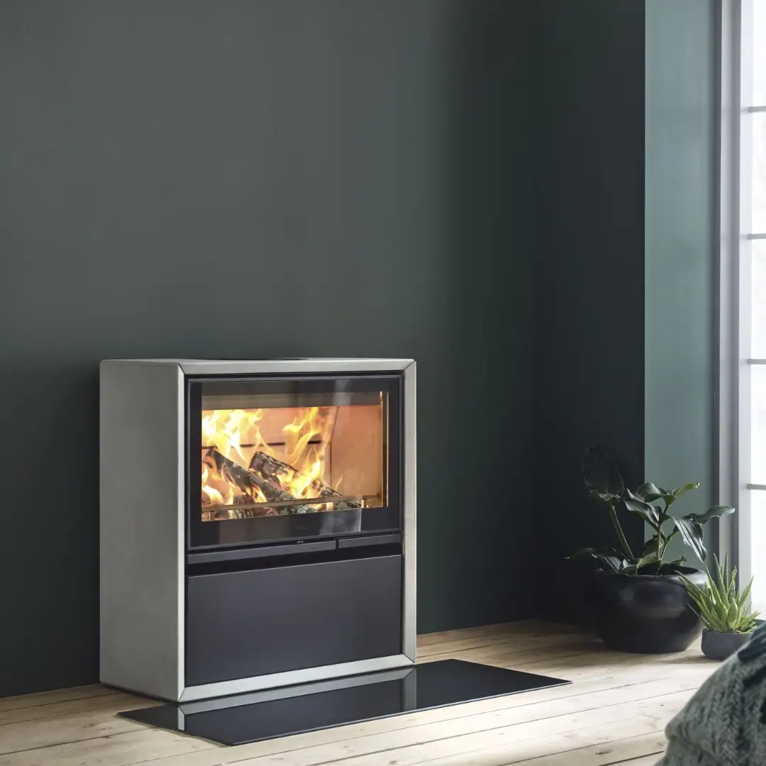 Contura 320A är en stilfull braskamin som kombinerar modern design med rustik karaktär. Den är klädd i värmelagrande artstone, en exklusiv betongliknande natursten med jämn grå nyans som ger kaminen ett unikt uttryck och effektiv värmehållning. Den robusta luckan i gjutjärn förstärker den solida känslan och ger ett mjukt, industriellt intryck som passar lika bra i moderna hem som i lantliga miljöer.