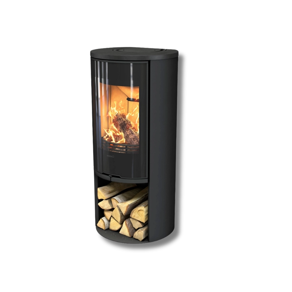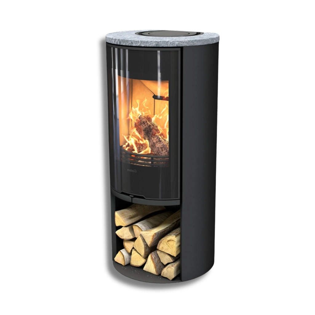 Tack vare den stora glasluckan sprider sig både värme och stämningsfullt ljus i rummet. Den moderna designen passar lika bra i det nybyggda huset som i stugan på landet. Kaminen är lätt att placera och ger effektiv värme även i mindre utrymmen.