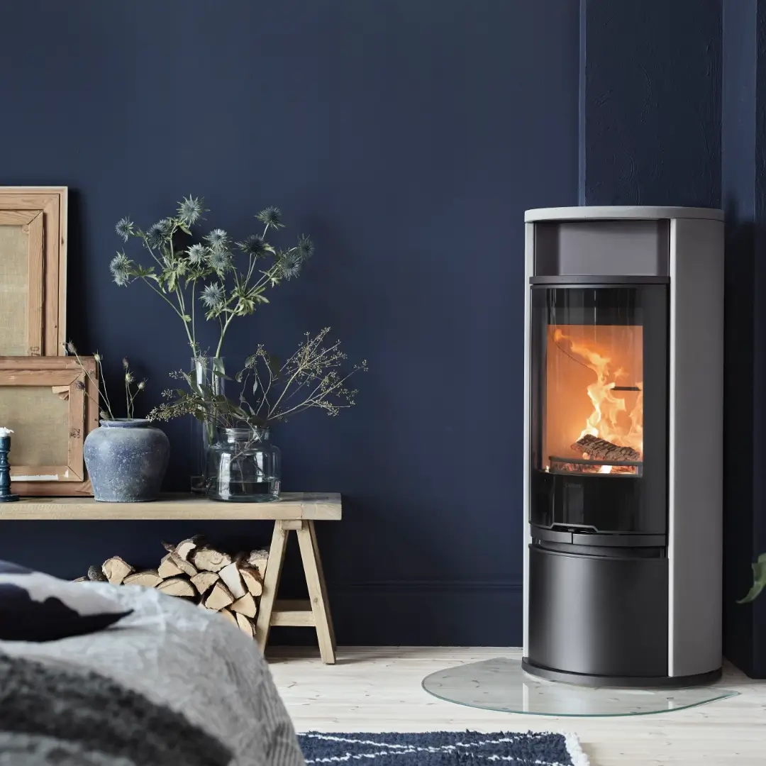 Med glasluckan får elden en central plats i rummet och skapar en varm, inbjudande atmosfär. Kaminen kan enkelt kompletteras med ett värmemagasin i Powerstone för extra långvarig värmelagring. För dig som vill ha en snygg och funktionell lösning för vedförvaring finns ett sidofack som tillval, perfekt integrerat för att smälta in i rummets helhet.