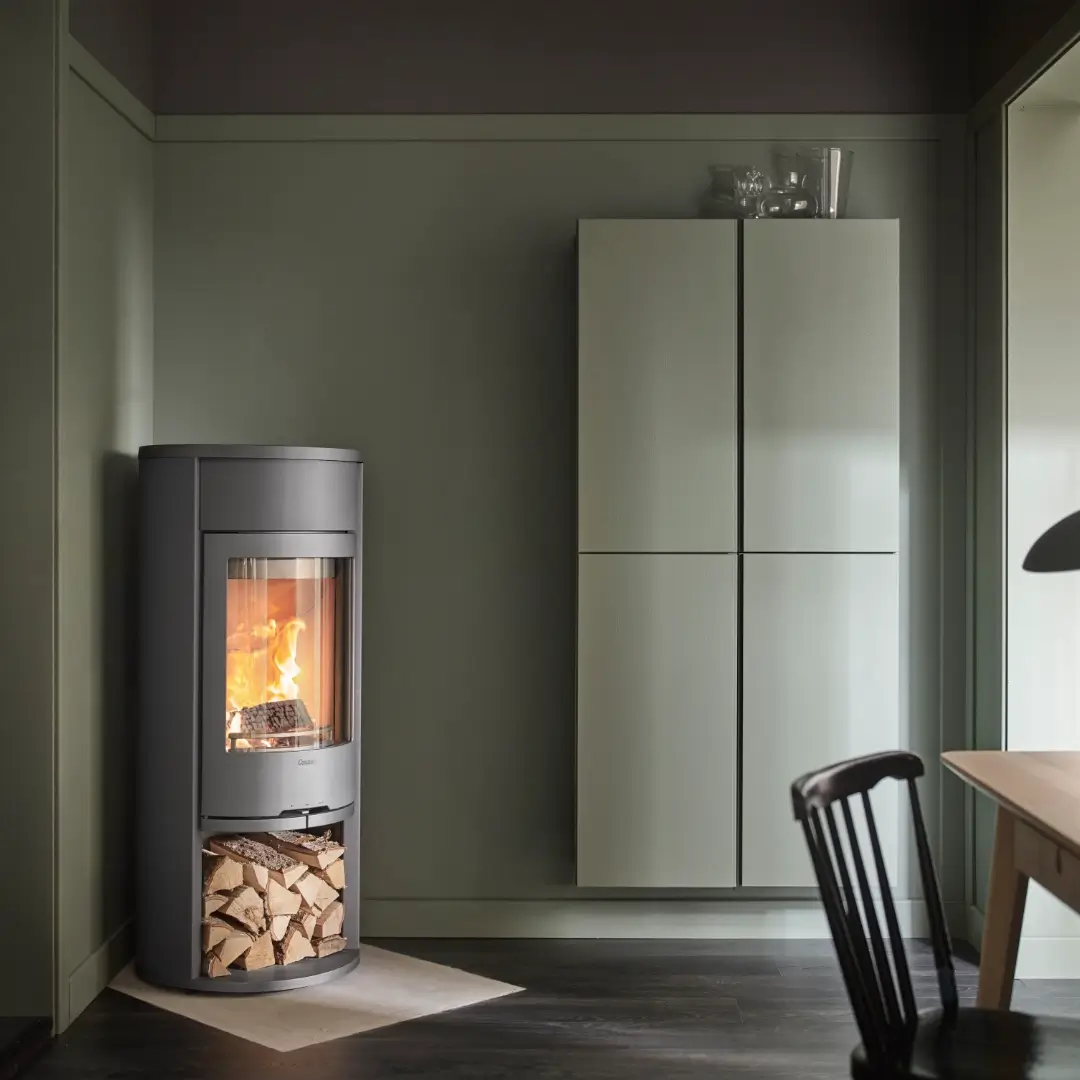 En ny och praktisk funktion är den sidoplacerade vedförvaringen, som gör det enkelt att hålla brasan levande utan att kompromissa med rummets estetik. Contura 610 Style är en perfekt kombination av kompakt format, flexibilitet och effektiv uppvärmning, anpassad för det moderna hemmet.