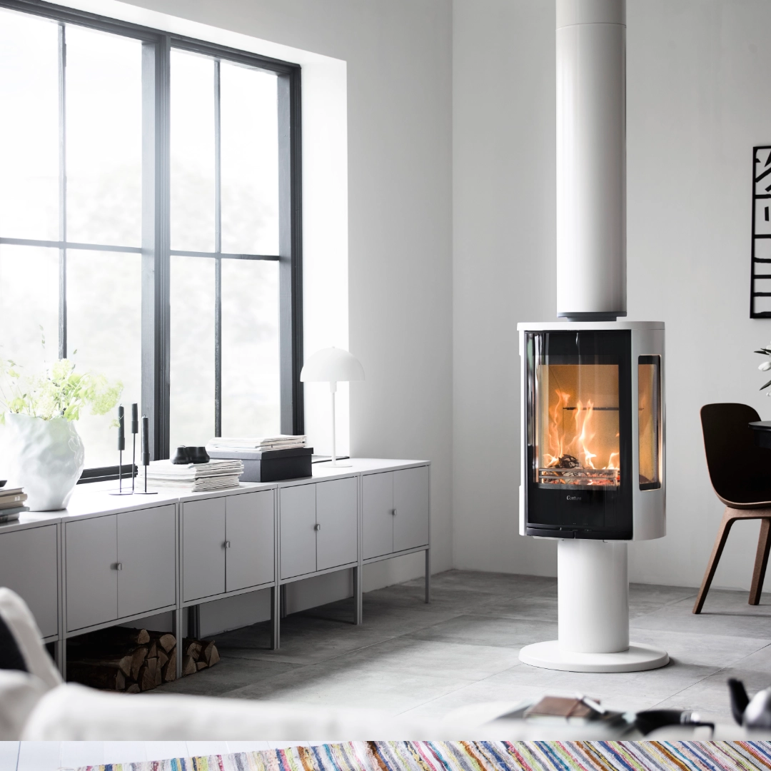Med tillvalet vridplatta kan kaminen roteras steglöst, så att du alltid kan rikta elden dit där du befinner dig. Oavsett om du kopplar av i soffan eller lagar mat, får du den bästa utsikten över brasan. Contura 886G i vitt är en stilren nyhet, perfekt för ljusa och moderna interiörer.