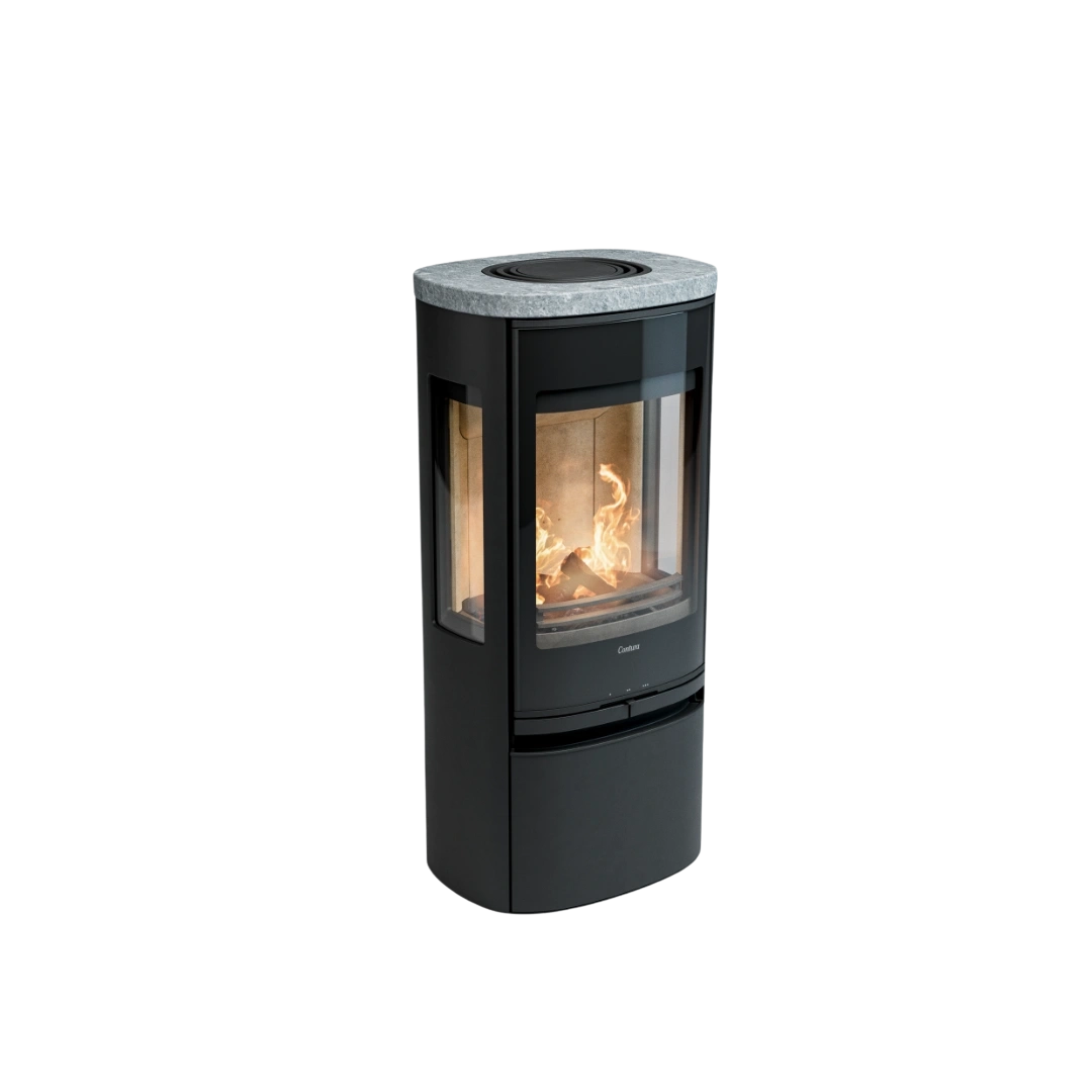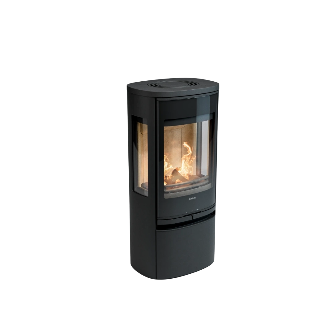 Med sina generösa sidoglas och den eleganta glasluckan bjuder Contura 956G Style på en fantastisk vy över lågorna från flera håll i rummet. Elden blir en naturlig samlingspunkt som sprider både värme och atmosfär, samtidigt som kaminen skapar en exklusiv känsla i ditt hem.