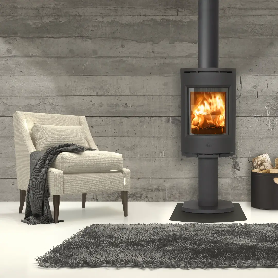 Jøtul F 137 kombinerar effektiv värme med prisbelönt design från Hareide Design. Den svarta, matta ytan och den eleganta pelarfoten ger kaminen ett modernt uttryck som smälter in i olika typer av inredningar. Välj F 137 om du söker en platsbesparande, funktionell och estetiskt tilltalande kamin med bra värmeegenskaper.