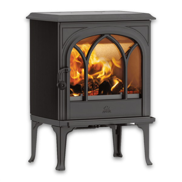 De organiska formerna och den vackert rundade ovansidan ger kaminen en elegant siluett. Den gotiskt inspirerade luckan ramar in elden och skapar en unik blickpunkt i rummet, medan de fyra solida benen ger ett stabilt och stilrent uttryck. Jøtul F 200 finns att välja med både korta och långa ben för att passa olika interiörer.