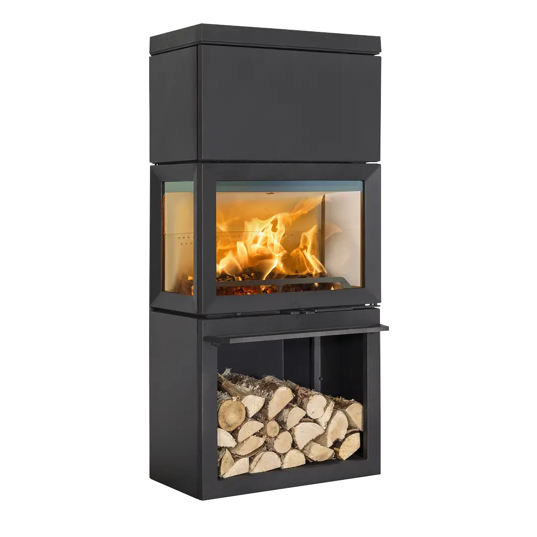 Jøtul F 520 High Top är en modern och funktionell kamin som för tankarna till en lägereld – fast i vardagsrummet. Med sina generösa glasytor får du 180 graders fri sikt till lågorna, och tack vare en specialbehandling håller sig glasen rena längre samtidigt som förbränningen blir både effektiv och miljövänlig.