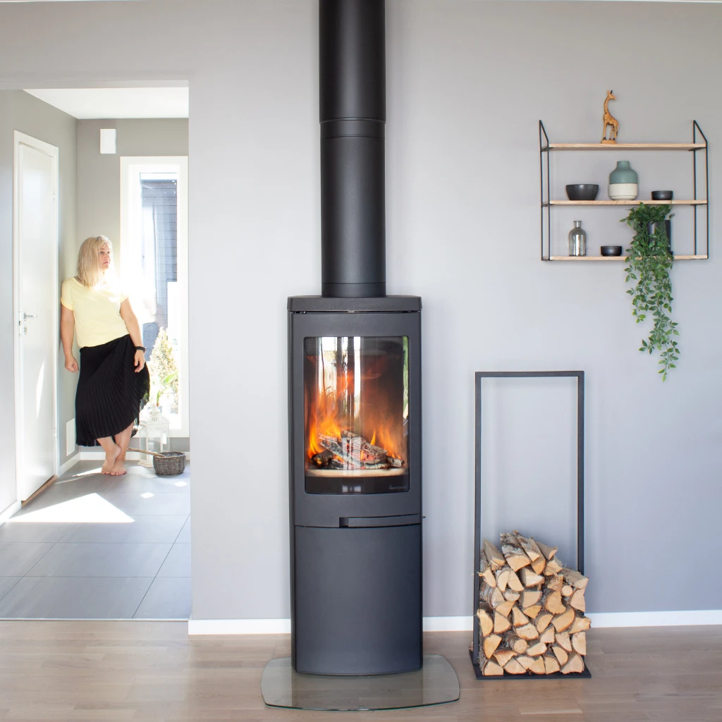 Kaminens stora glaslucka bjuder på en klar vy över lågorna, medan den praktiska förvaringsluckan i underdelen ger ett rent och enhetligt uttryck. Duo 5 DV är både ett blickfång och en smart värmekälla som passar perfekt i moderna miljöer.