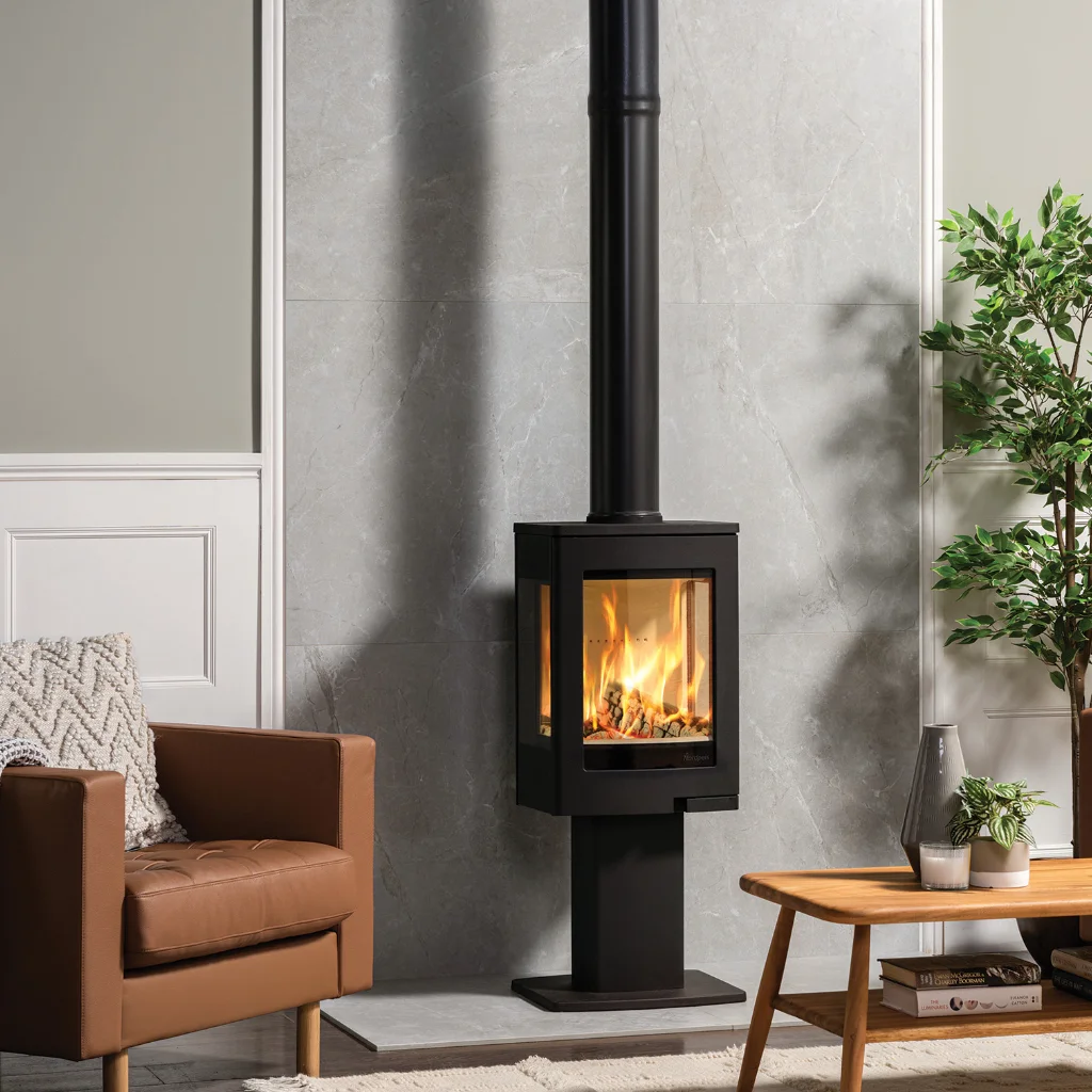 Nordpeis Uno 1 är en kompakt och stilren vedkamin som kombinerar klassisk skandinavisk design med smart funktionalitet. Med glas på tre sidor sprider elden sitt sken i hela rummet – perfekt för dig som vill njuta av lågorna från flera vinklar.