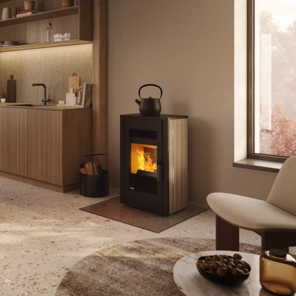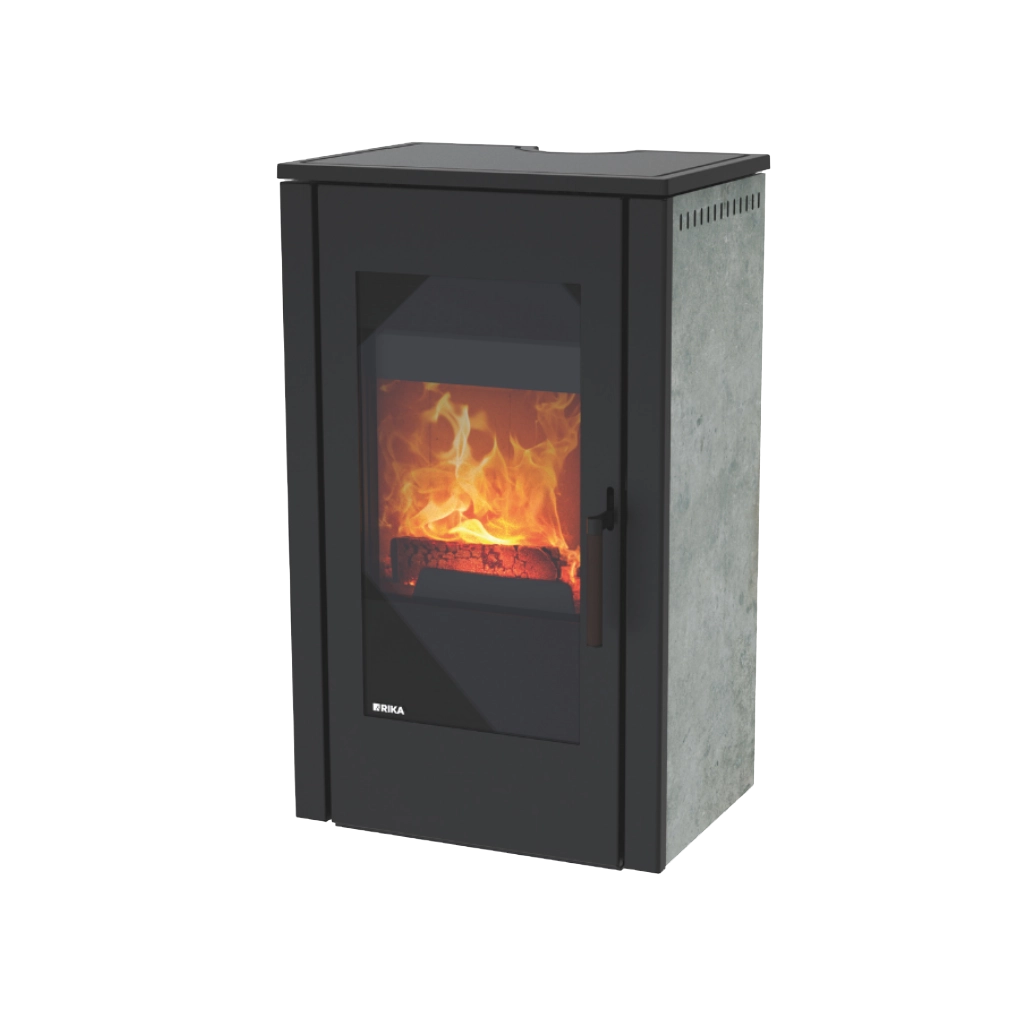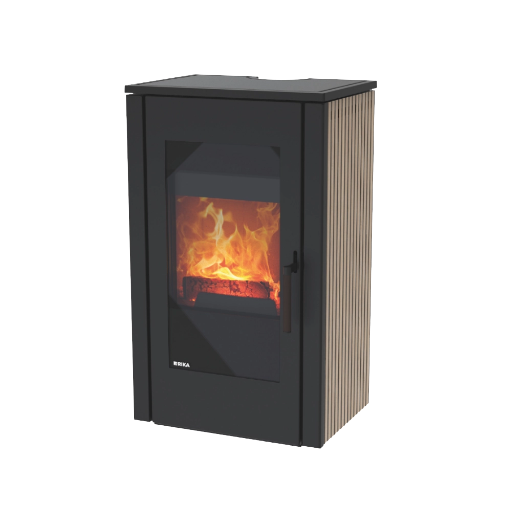 RIKA Moka är inte bara funktionell, utan även en stilfull inredningsdetalj. Välj mellan sidobeklädnad i svart stål, keramik med trälamelldekor eller stenliknande grå finish för att matcha både klassiska och moderna interiörer. Resultatet blir en kamin som blir hemmets naturliga mittpunkt – lika vacker att se på som den är praktisk att använda.