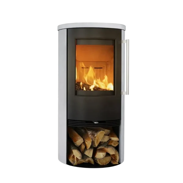Den tunga sandstenen har en utmärkt förmåga att lagra och avge värme under lång tid, vilket ger en behaglig och jämn värme även efter att elden har slocknat. Den eleganta gjutjärnsdörren är utrustad med två värmetåliga magneter för smidig och underhållsfri stängning, helt utan rörliga delar – något som säkerställer både hållbarhet och enkel användning.