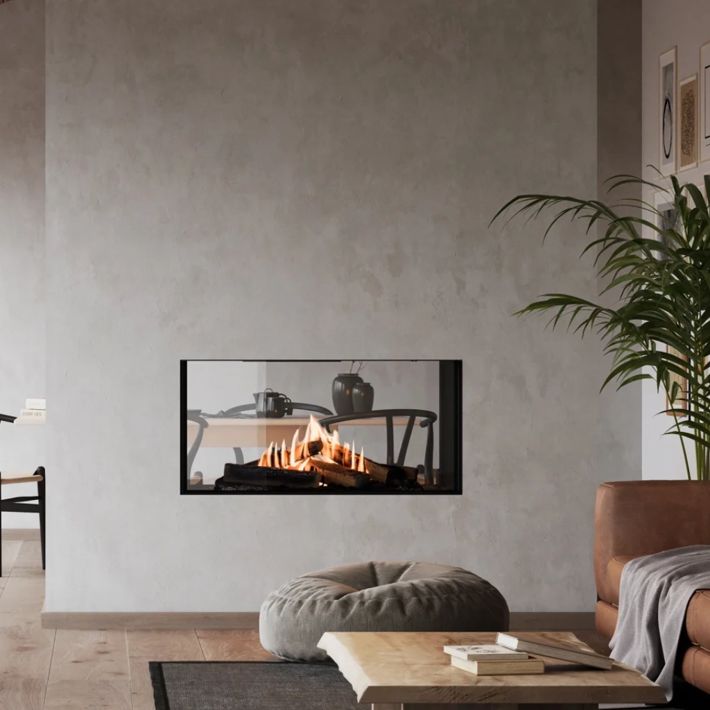RAIS Visio 100 T är en exklusiv gaskamin i tunnelmodell som skapar en spektakulär genomsikt mellan två rum. Med eld synlig från båda sidor blir kaminen en stilren och funktionell rumsavdelare som ger hemmet en modern och lyxig känsla.
