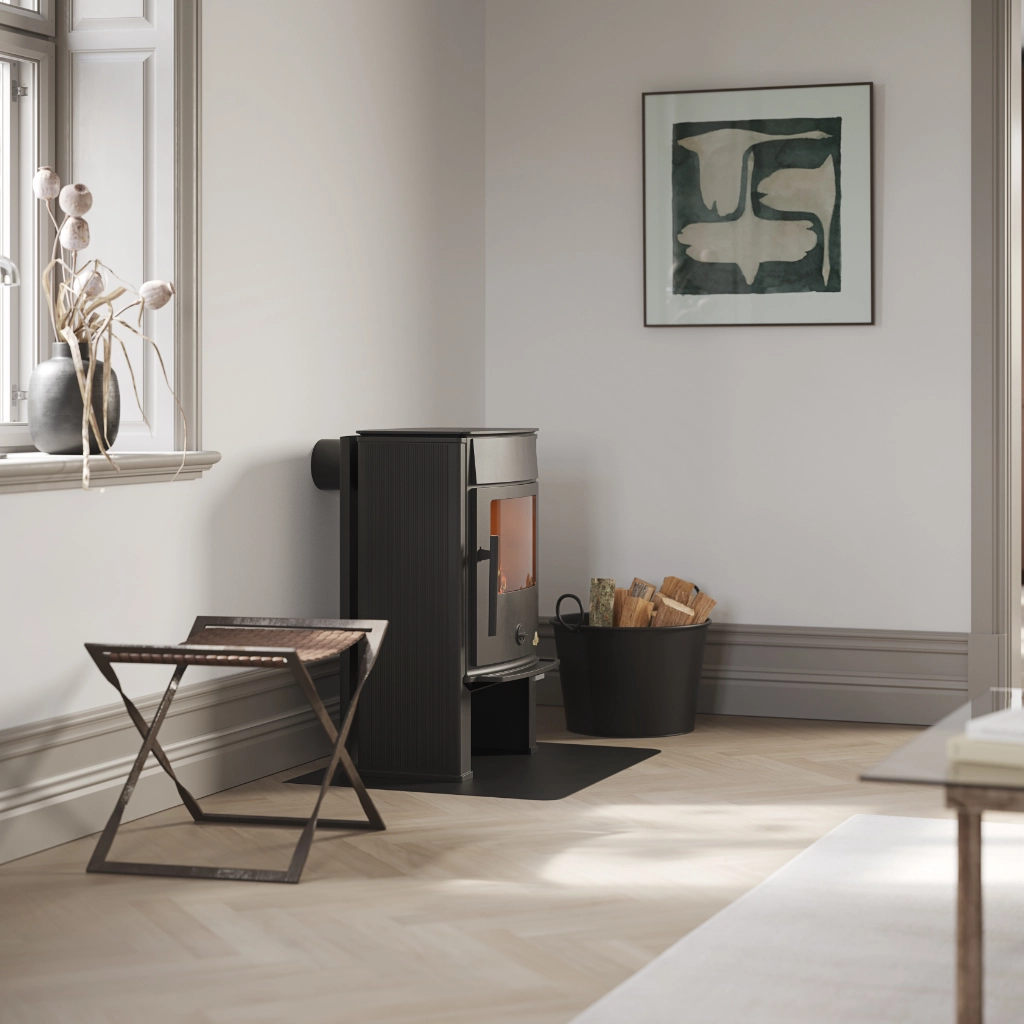 Letar du efter en vedeldad kamin som kombinerar effektiv värme med tidlös design? Då är Oden 6300 konvektionskamin ett utmärkt val. Med sina täckta sidor och kraftiga stomme i gjutjärn sprider kaminen inte bara värme och trygghet, utan även stil och atmosfär i hela hemmet.
