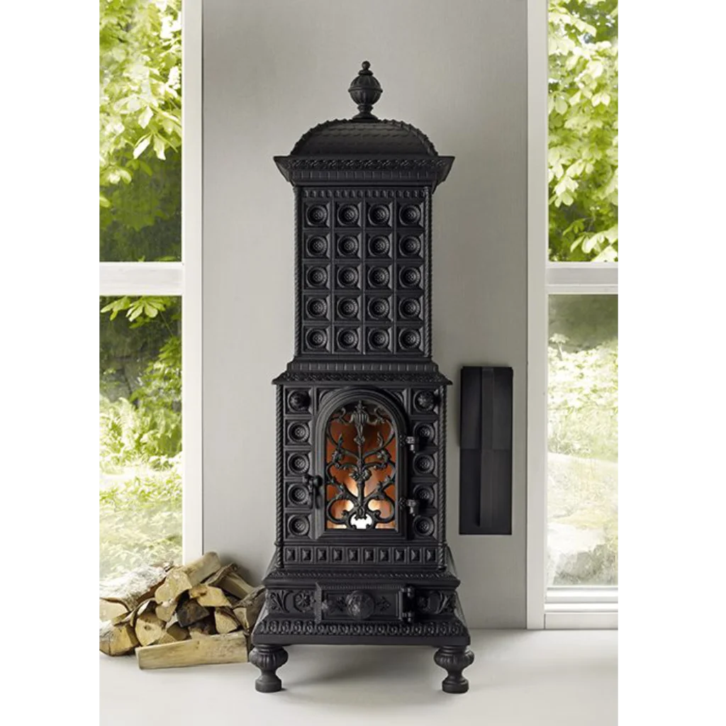 Royal Viking är en tidlös gjutjärnskamin med anor från över 150 år tillbaka – nu i modern nyproduktion. Med sin vackert mönstrade yttermantel och klassiska formspråk blir den en självklar mittpunkt i hemmet, där tradition möter dagens krav på effektivitet och komfort.
