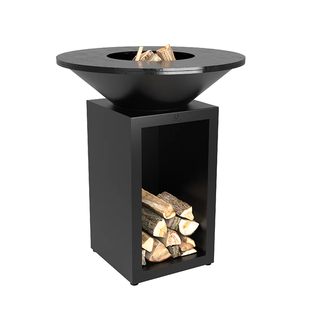 OFYR Classic Storage Black 85 förenar samma ikoniska form och estetik som Classic-modellen med integrerad vedförvaring. Den runda designen och eldens naturliga dragningskraft skapar en varm och social atmosfär där alla vill samlas – ett helt nytt sätt att laga mat utomhus, enkelt och inspirerande.
