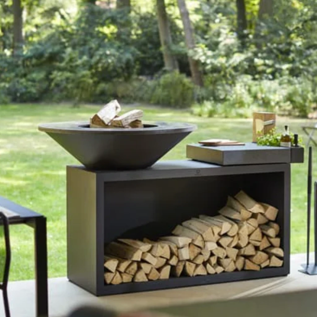 Med rymlig vedförvaring på 0,3 m³, ett integrerat flaskställ och en arbetsskiva i teak har du alltid det du behöver nära till hands. Perfekt för både spontana grillkvällar och större sammankomster med vänner och familj.
