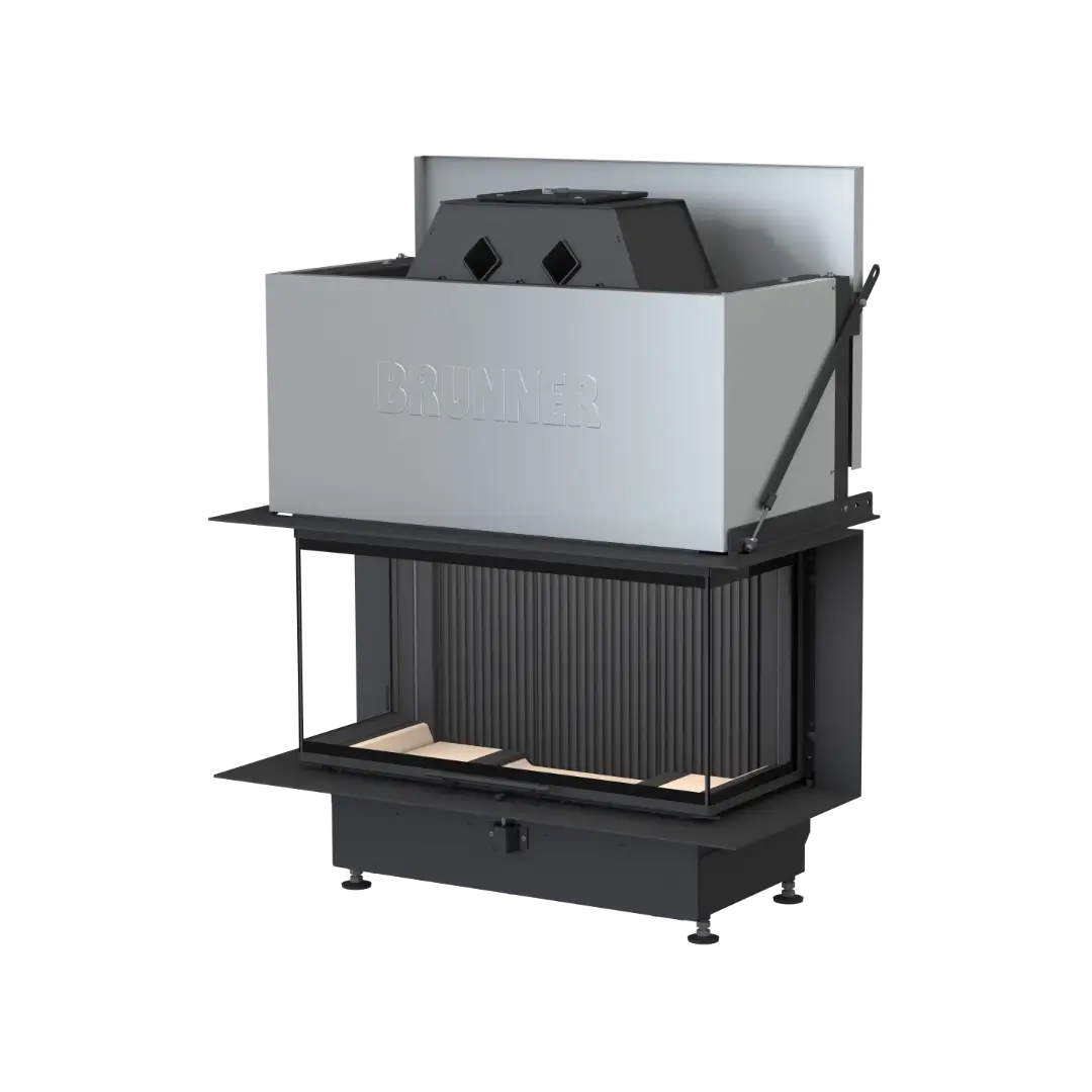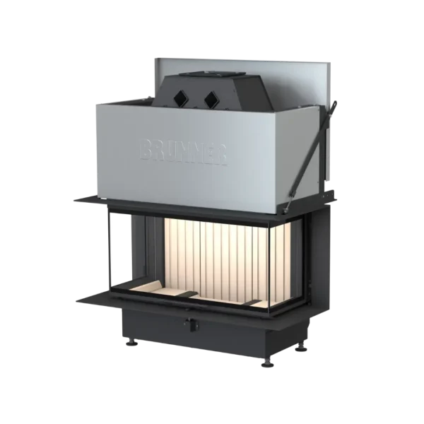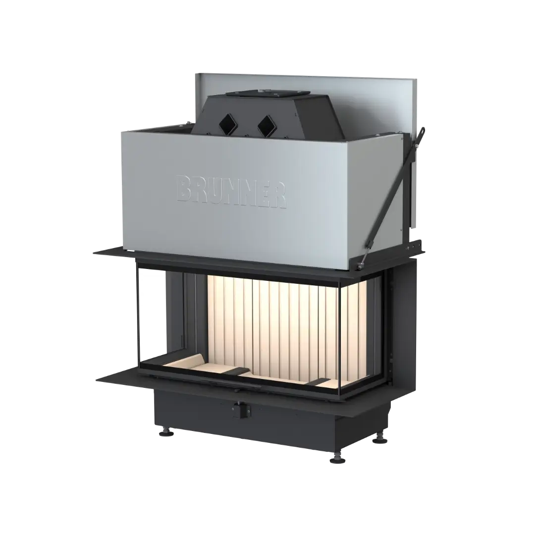 Skapa en eldstad som blir hemmets mittpunkt med Brunner BKH 5.0 Panorama 45-35-90-35 – en generös och bred vedeldad insats med hisslucka, designad för platsbyggnation. Denna eleganta modell erbjuder ett frontglas på hela 90 cm samt sidoglas på 35 cm, vilket ger dig en imponerande panoramavy av elden från flera håll.