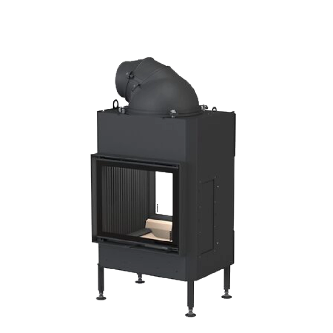 Den smidiga glasytan (35 x 43 cm) ger en klar och vacker insyn till lågorna från båda sidor. Modellen kan fås med hisslucka på båda sidor eller som sidöppnande dörrar, där gångjärnen kan placeras både till vänster och höger – vilket gör installationen enkel att anpassa efter rummet.
