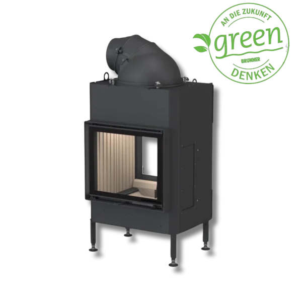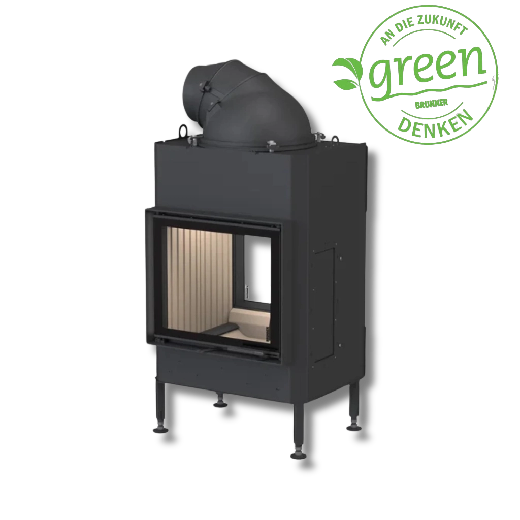 Insatsen är utrustad med Brunners patenterade vedförbränning och kan kompletteras med Green+ katalysator för ännu renare och mer effektiv eldning. Detta innebär låga utsläppsvärden, hög verkningsgrad och en miljövänlig uppvärmning – helt i linje med dagens krav.