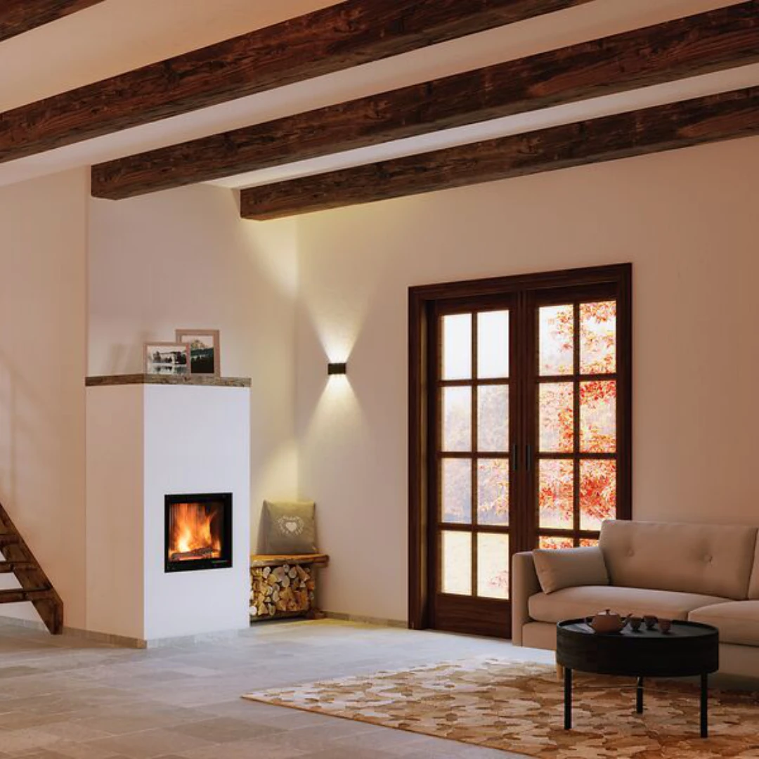 Kaminen kan styras både manuellt eller via en kontrollenhet som automatiserar förbränningen för optimal komfort. Med energiklass A+ är den ett miljövänligt och energieffektivt val.