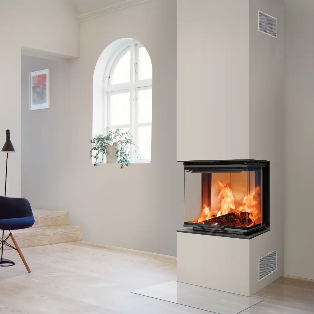 Skapa ett stilrent och personligt uttryck i ditt hem med Jötul I 320 FRL, en modern kamininsats med tre glas som ger en fantastisk insyn över lågorna från flera vinklar. Denna exklusiva insats blir ett naturligt blickfång i rummet och passar perfekt för dig som vill kombinera design, funktion och effektiv värme.