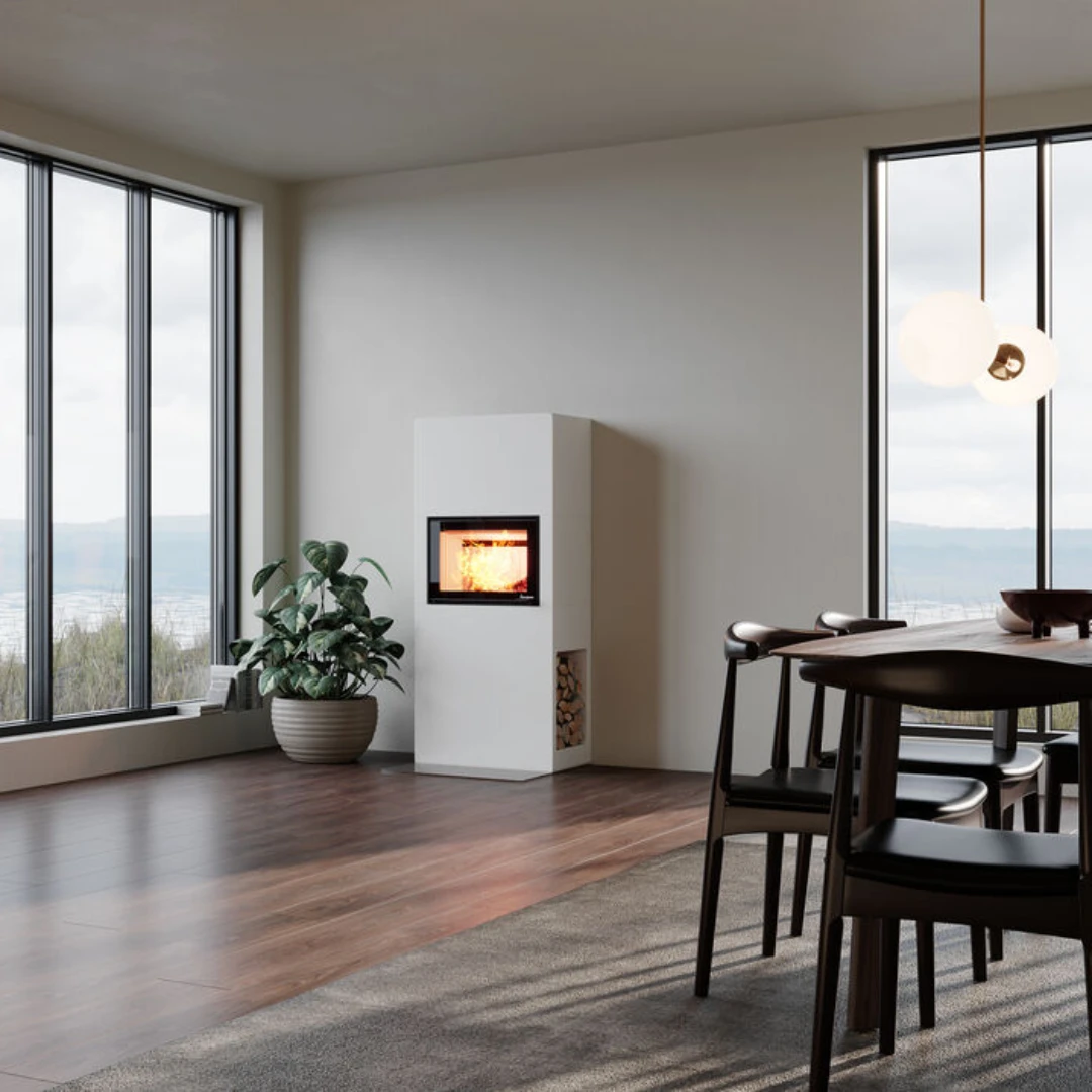 Nordpeis N-21F Exclusive är en stilren och elegant insats som kombinerar modern design med praktisk funktionalitet. Med en bekväm stoppfunktion hålls luckan säkert uppe när du lägger in ved, och det värmeisolerade handtaget gör eldningen trygg och enkel, utan att bli varmt.