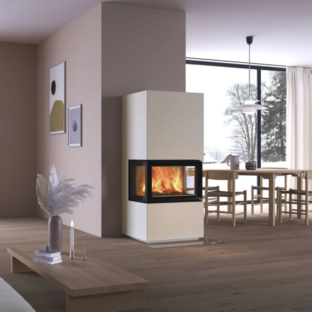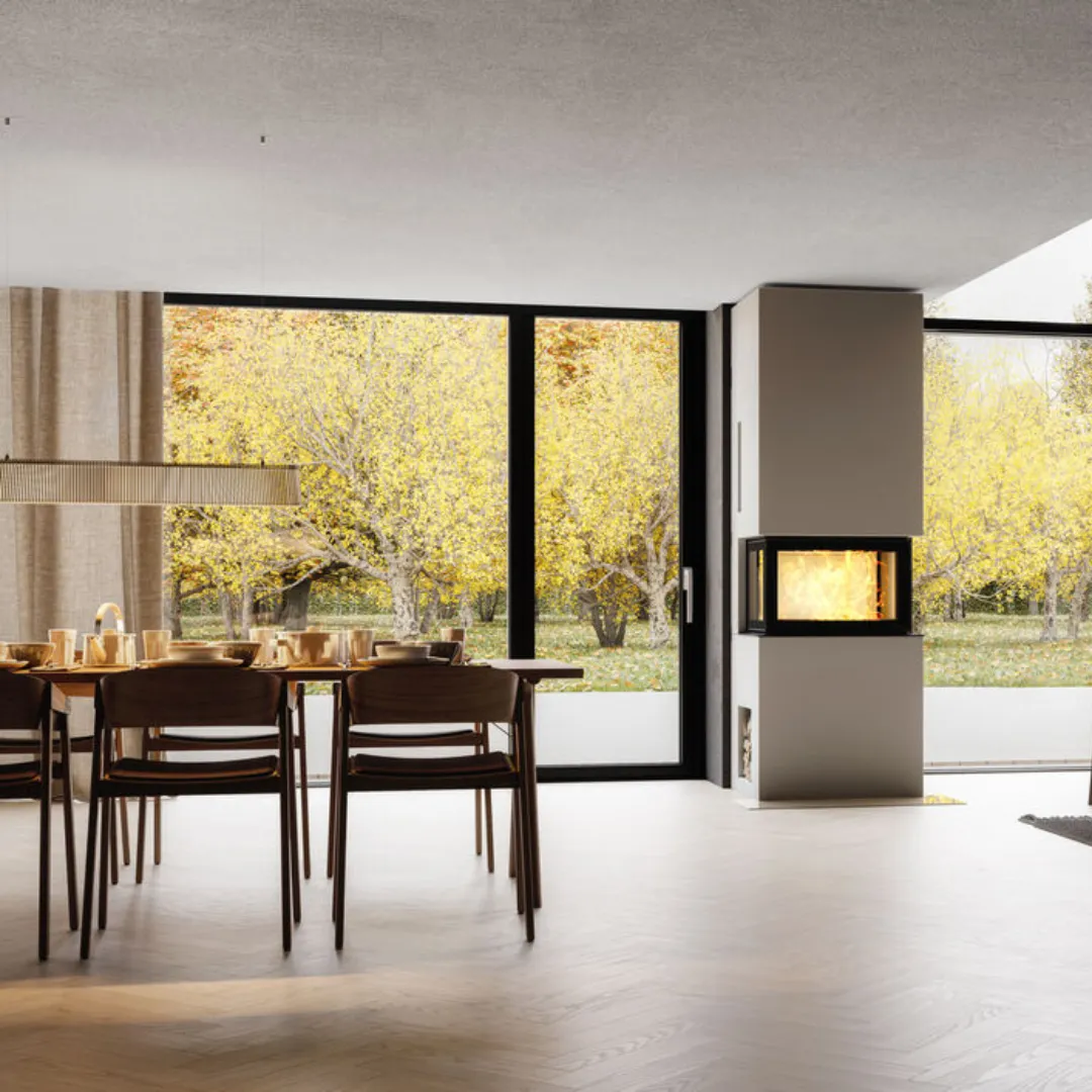 Med dubbla glasrutor i både front och sidor kombineras effektiv värmehållning med renare glas tack vare en specialbehandlad, reflekterande yta. Resultatet är en optimal förbränning med minimal sotbildning och hög användarvänlighet.