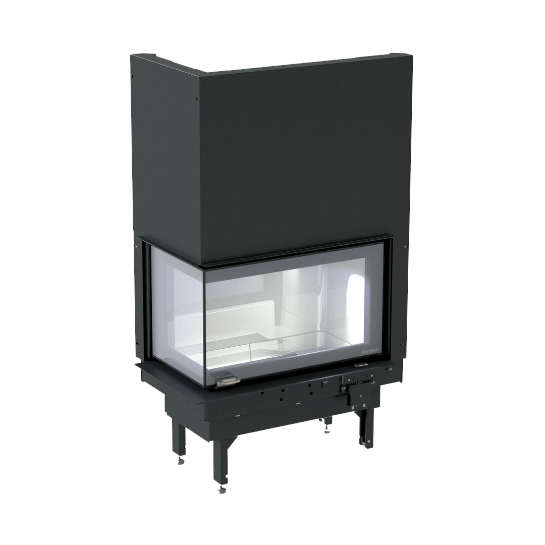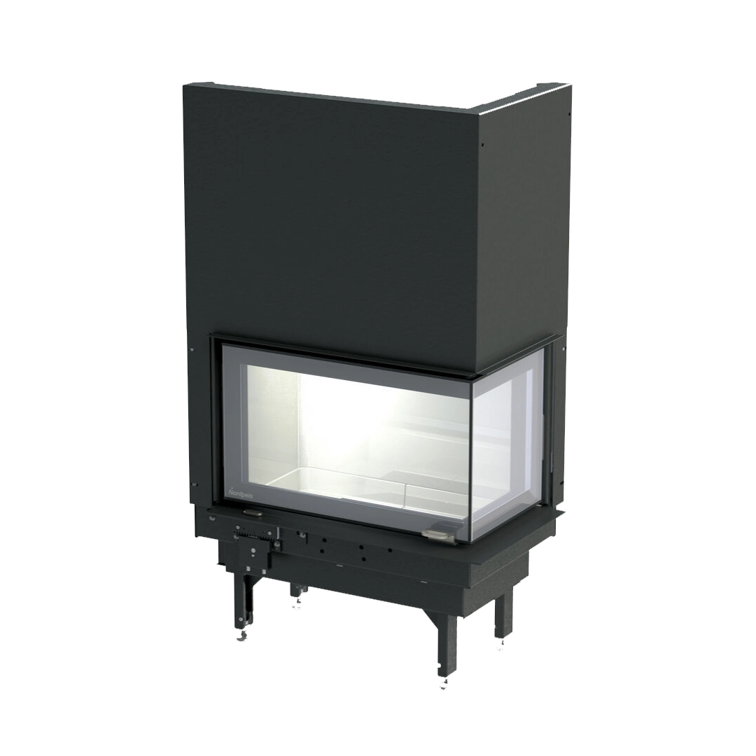 Nordpeis Q-34AL är en rymlig och elegant insats med vinklat glas som ger en tydlig och vacker vy av lågorna. Den välgenomtänkta designen gör att du kan njuta av brasan från flera vinklar, vilket skapar en mysig och inbjudande atmosfär i ditt hem.