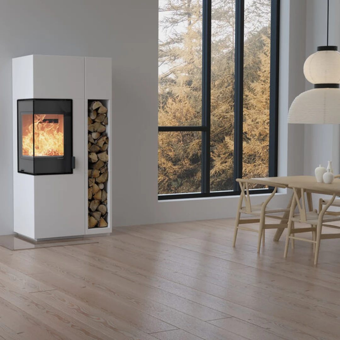 Upplev elden från flera vinklar med Nordpeis S-31A Exclusive, en elegant vinkelinsats designad för maximal eldupplevelse. Den unika vinklingen och de stora, utanpåliggande glasen utan skarvar ger dig en kristallklar och vidsträckt insyn till lågorna – från två håll.