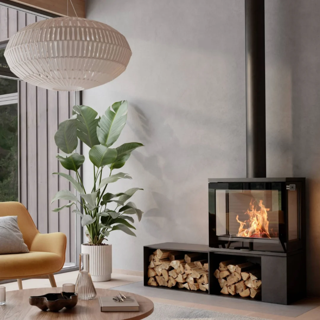För dig som vill ha ett komplett och möbellikt uttryck kan RAIS 600 ART kombineras med en sockel i svart mattlackerat stål. Sockeln ger kaminen en stabil grund och förstärker det exklusiva intrycket – en färdig möbel som lyfter hela rummet.