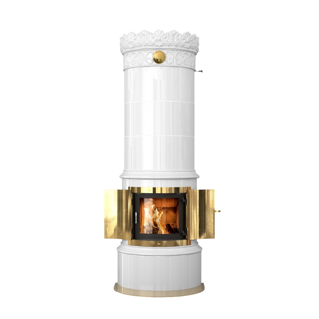 Kungsholm är en exklusiv kakelugn som kombinerar klassisk jugendinspiration med modern funktion. Den vackra reliefkronan och dekorativa frisen ger eldstaden ett stilrent och sofistikerat uttryck, perfekt som ett elegant blickfång i både äldre och moderna hem.