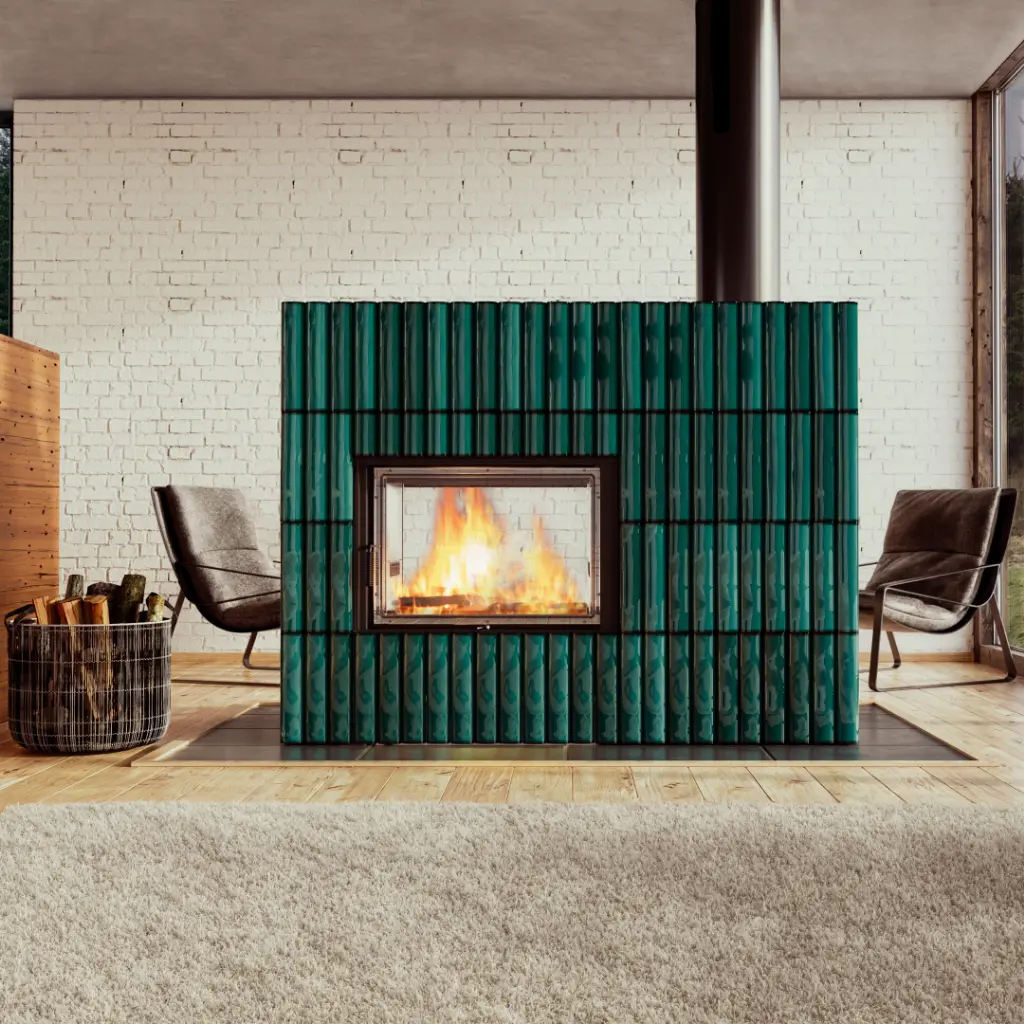 Eldstaden är klädd med räfflad Chamotte, som lagrar värmen och sprider den långsamt och jämnt. Med vedförbränning och katalysatorteknik får du en ren, effektiv och miljövänlig eldning med hög verkningsgrad och minimal vedåtgång.
