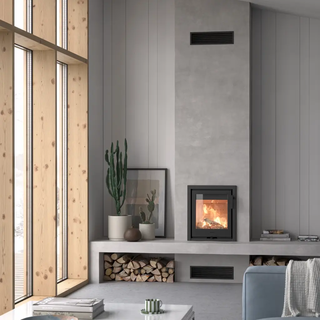 Till skillnad från en traditionell öppen eldstad, där mycket värme försvinner upp i skorstenen, har Contura i1 en effektiv förbränning som gör att värmen stannar i rummet. Det gör inte bara eldstaden mer miljövänlig, utan hjälper dig också att spara energi och sänka uppvärmningskostnaderna.