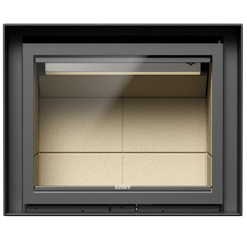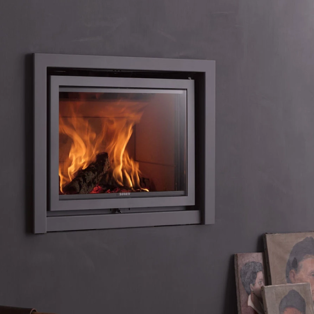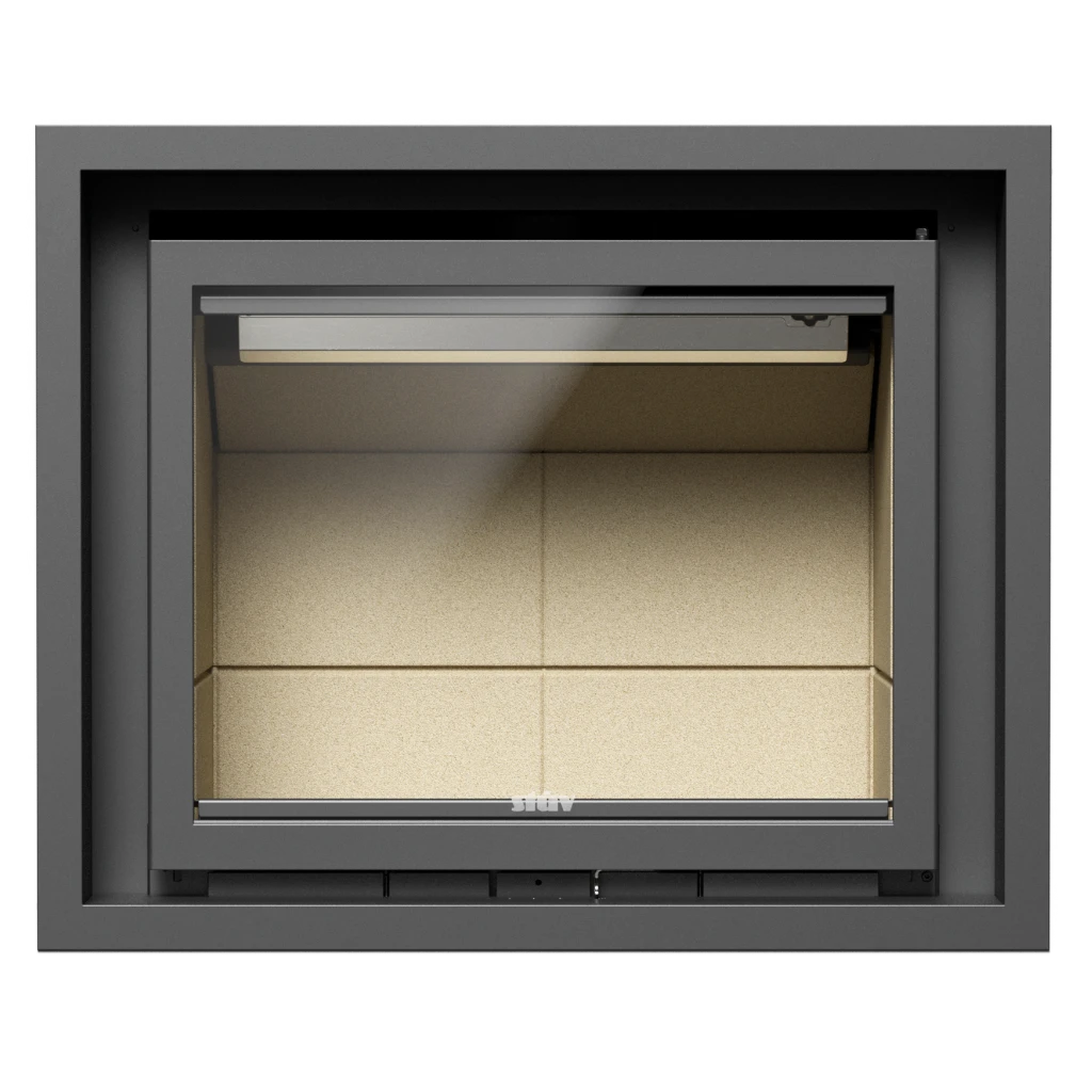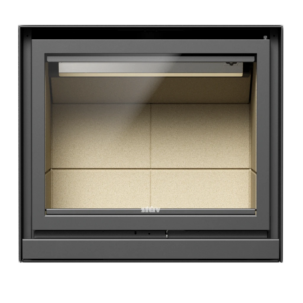 Den är idealisk för både nybyggda och renoverade eldstäder, och kan monteras med minimal bygginsats. Det stora frontglaset ger en stämningsfull vy över lågorna, medan den smarta luckkonstruktionen gör att kaminen alltid används med stängd dörr för maximal säkerhet och verkningsgrad.