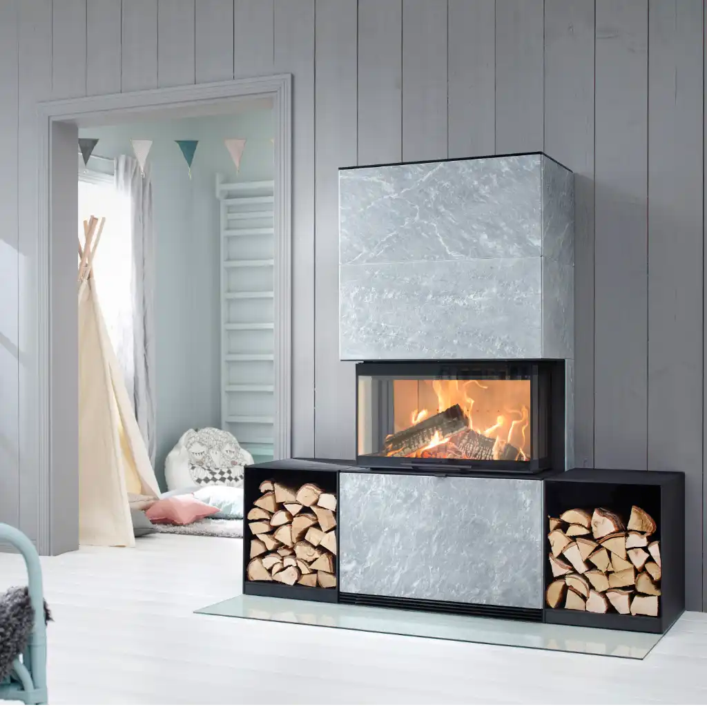 Vill du skapa en riktigt unik eldstad? Då kan du lägga till LED-belysning i sockeln – ett elegant ljusinslag som ger eldstaden en svävande känsla och gör den till ett verkligt blickfång i rummet.
