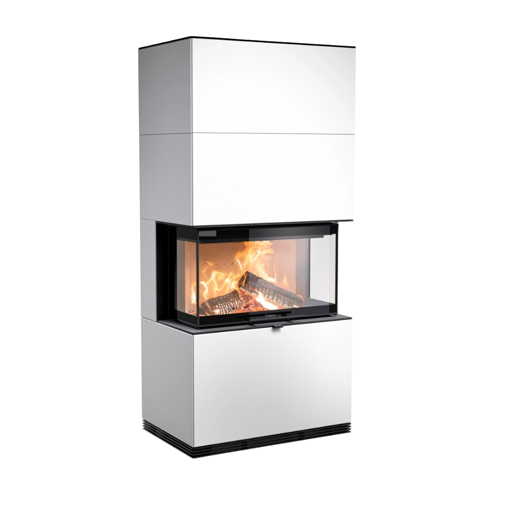 Den rymliga brännkammaren rymmer rejäla vedträn och skapar en kraftfull och vacker brasa som både värmer och imponerar. Med Conturas Clean Burning-teknik hålls glasen rena och sikten klar, även vid regelbunden eldning.