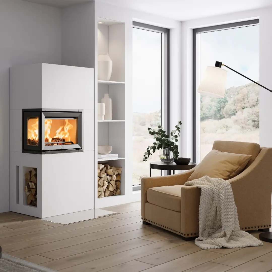 Perfekta för hörnmontage eller som fristående lösning, skapar FS 520 FL/FR ett modernt uttryck med maximal insyn till lågorna. De stora glasytorna gör elden till rummets naturliga blickfång, oavsett var du befinner dig.