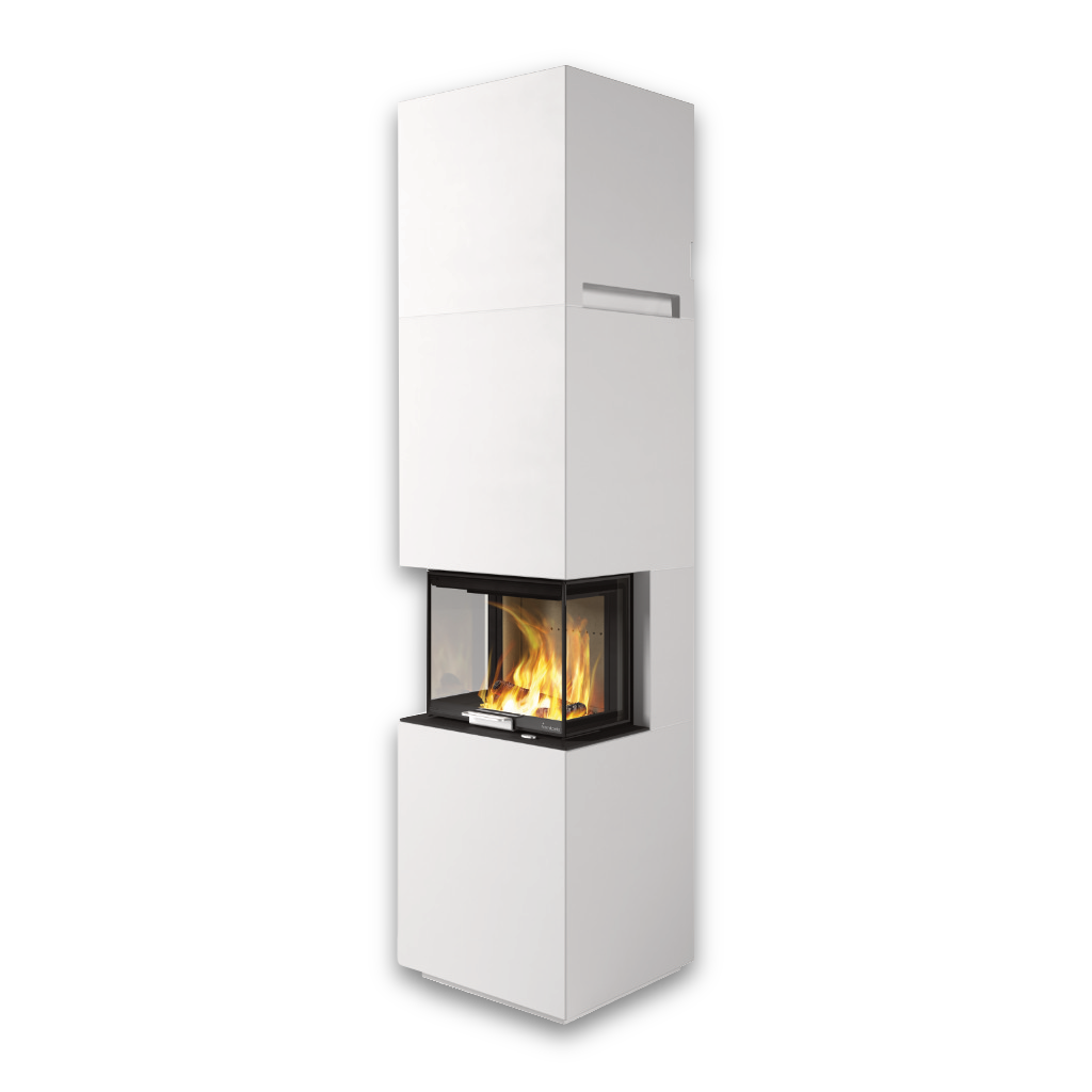 Den exklusiva höj- och sänkbara luckan underlättar vedinläggning och förstärker den moderna känslan. Med generös glasfront får du snygg insyn till lågorna – från såväl sittplats som ståhöjd – vilket ger en varm och inbjudande atmosfär i hela rummet.
