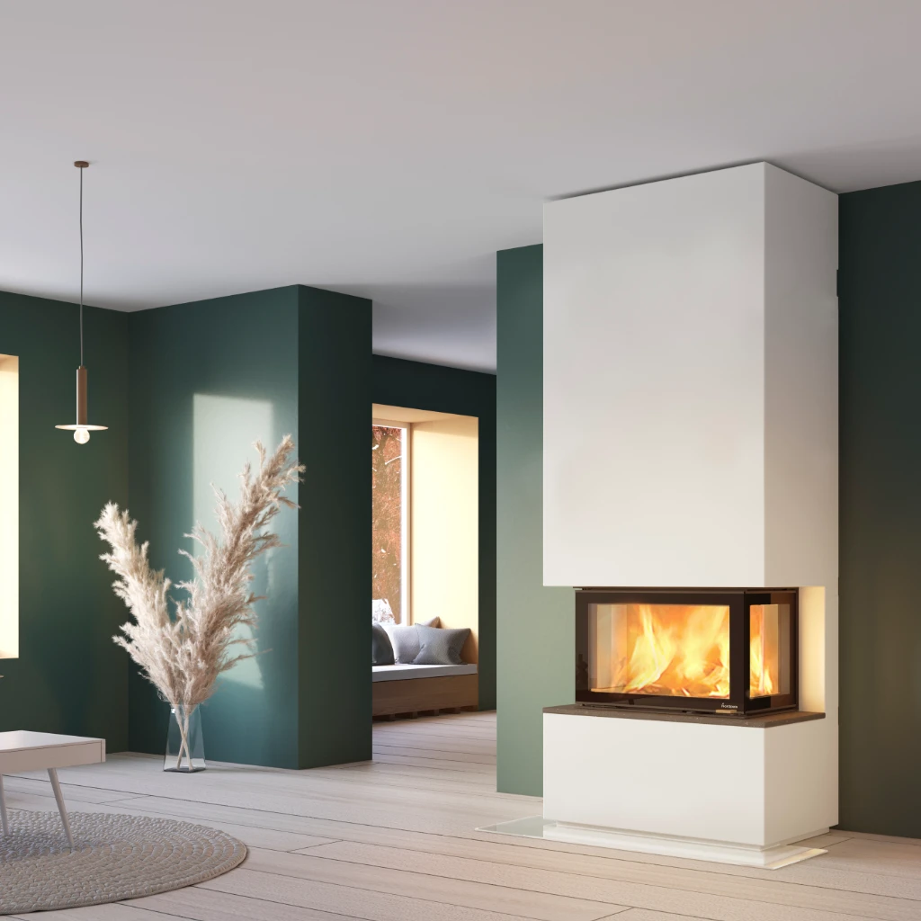 Den integrerade insatsen är utrustad med dubbla glas på sidorna och fronten. Tack vare en reflekterande glasbeläggning hålls rutorna renare längre och bidrar samtidigt till en effektiv och miljövänlig förbränning.