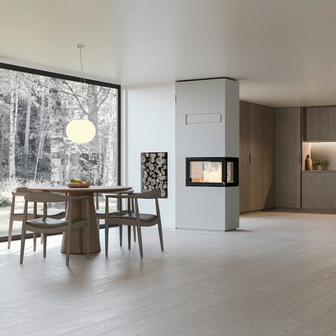Med Contura i8 COSI får du full frihet att skapa en eldstadslösning som passar just ditt hem. Välj att se elden från höger, vänster eller från båda sidor – det är du som bestämmer! Den innovativa designen med glas på flera sidor ger dig en fantastisk vy över lågorna och skapar en värmande och inbjudande atmosfär i rummet.