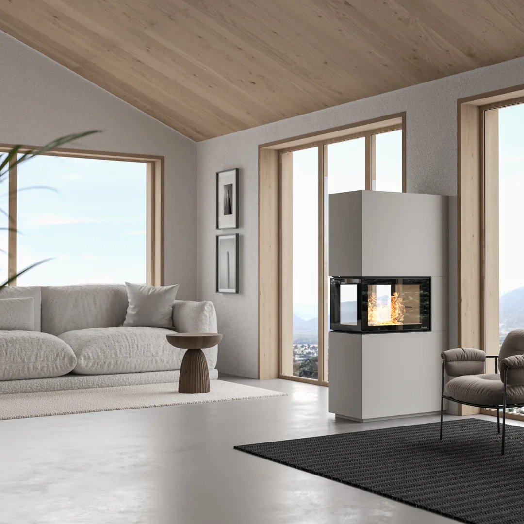 Genève P är en modern och stilren murspis som kombinerar design och funktion på bästa sätt. Med dubbla IR-glas runt eldstaden får du sikt mot lågorna från flera vinklar, vilket gör den till ett perfekt val för dig som vill skapa en eldstad i hemmets centrum.