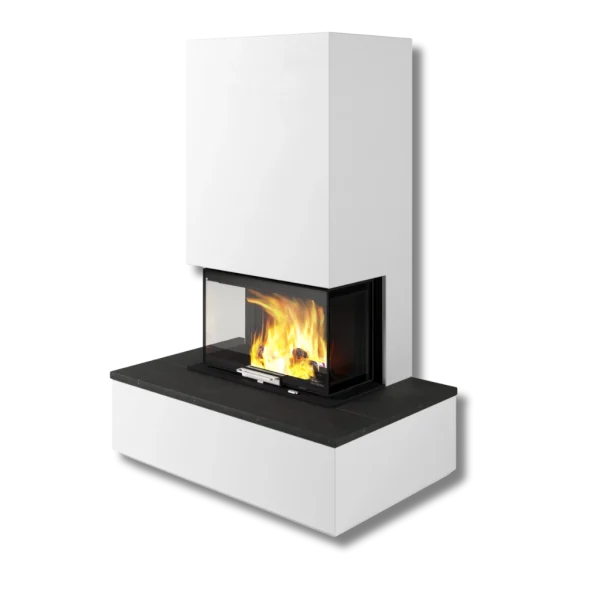 Den lågt placerade insatsen ger en naturlig eldupplevelse i ögonhöjd när du sitter ner, och den integrerade bänken framtill förstärker känslan av komfort och estetik. Dolda luftventiler i underdelen ger ett rent och minimalistiskt uttryck som passar både klassiska och moderna hem.