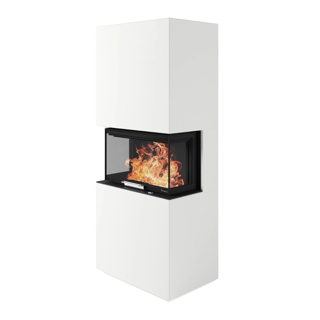 Den höga insatsen ger bekväm ögonhöjd för dig som står eller rör dig i rummet, och passar särskilt bra i öppna planlösningar och större ytor. Dolda luftventiler i underdelen bidrar till ett rent, stilfullt helhetsintryck. Eldstaden kan med fördel kompletteras med ett matchande vedförvaringsfack för både funktion och design.