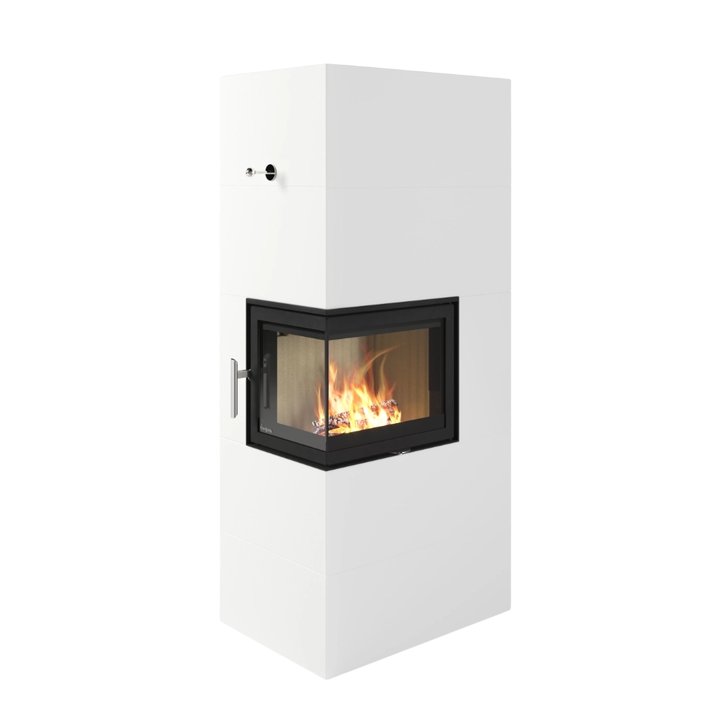 Upplev värmen från Nordpeis Salzburg C, en elegant kamin med vinklade glas som ger en bred och inbjudande vy av lågorna. Den unika PowerStone-värmelagringen lagrar och sprider värmen från elden över lång tid, vilket gör att du kan njuta av en jämn och skön temperatur dygnet runt, redan efter några få uppvärmningscykler.