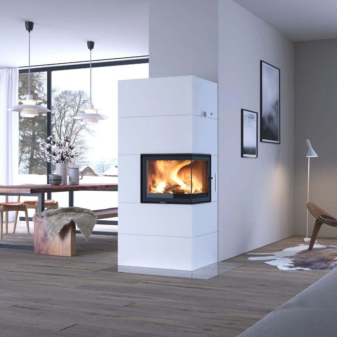Kaminen är designad för maximal flexibilitet och kan placeras både mot vägg, i hörn eller som en fristående eldstad mitt i rummet. Dessutom kan Salzburg C kopplas till en extern lufttillförsel, vilket bidrar till bättre förbränning och renare inomhusluft.