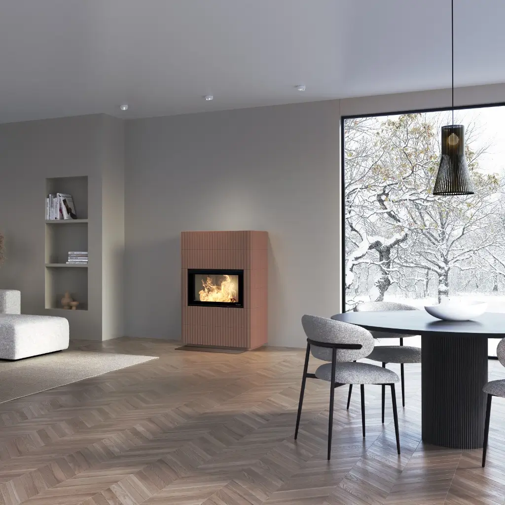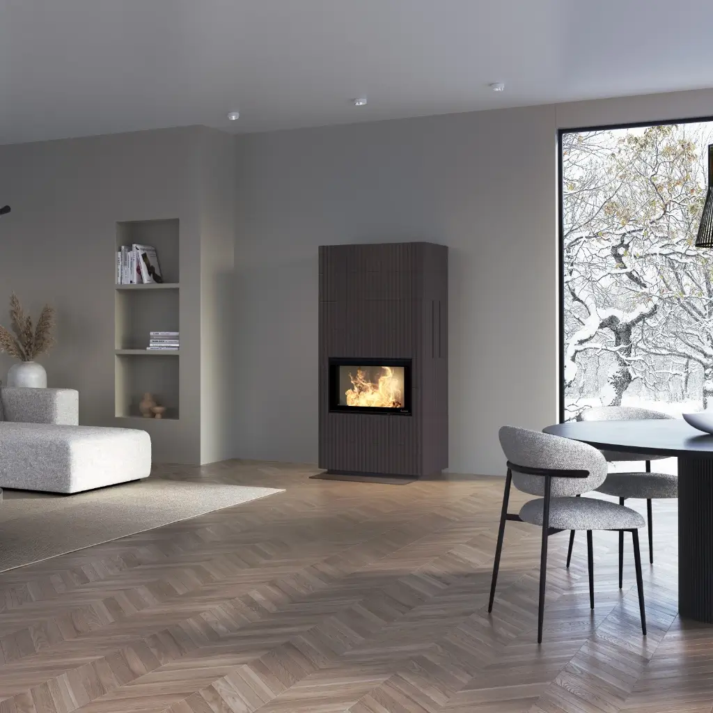 Nordpeis Wave F är den perfekta eldstaden för dig som vill uppleva eldens magi i full skala. Med sin extra stora frontinsats får du maximal insyn till lågorna – något som skapar både atmosfär och närvaro i rummet. Den vågformade ytan ger kaminen ett levande uttryck som förändras i takt med ljusets skiftningar, vilket gör varje stund framför elden unik.