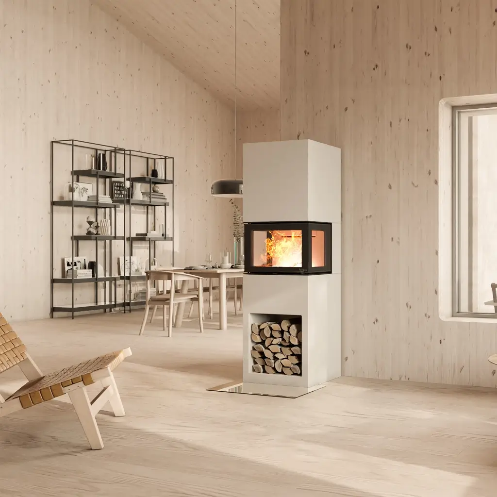 Nordpeis Praha passar dig som söker en modern murspis med panoramavy, praktisk förvaring och flexibla placeringsmöjligheter.