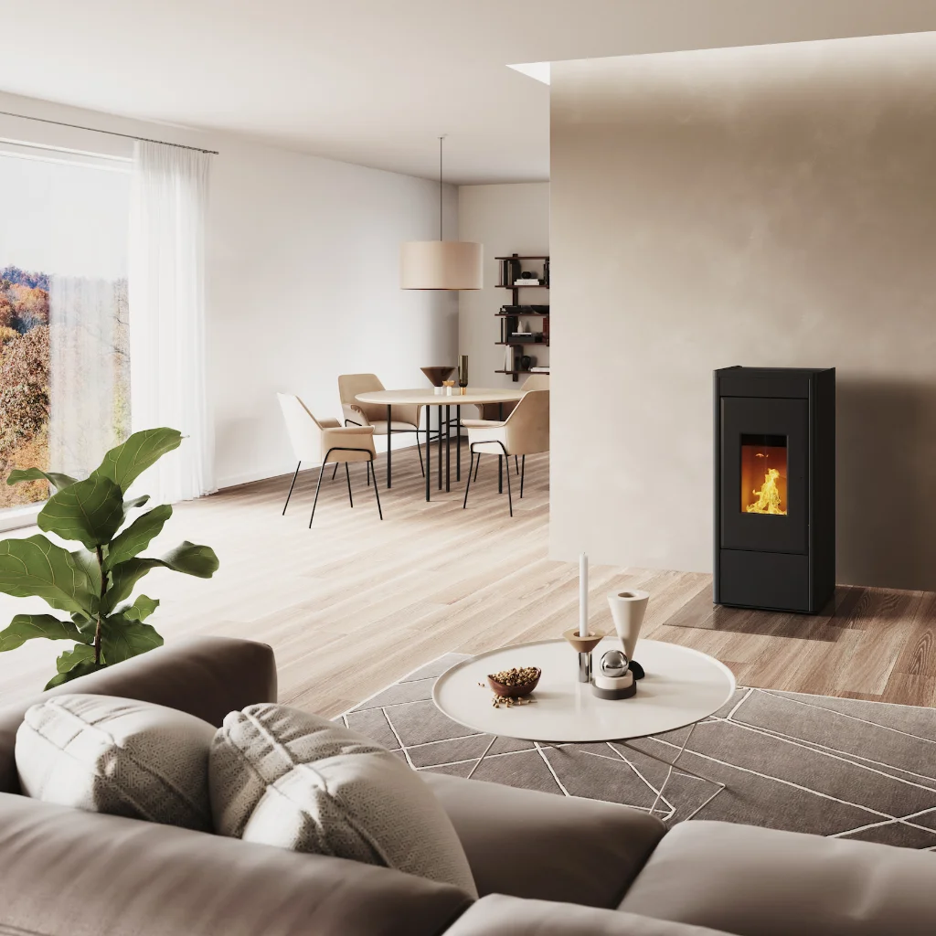 Kaminen är utrustad med helautomatiskt styrd lufttillförsel, vilket säkerställer optimal förbränning, hög effektivitet och låga utsläpp – ett miljösmart val för ditt hem. Rika Primo finns i två effektstorlekar: 6 kW för mindre ytor och 8 kW som utan problem värmer större rum. Pelletbehållarens kapacitet och kaminen höjd anpassas efter modellen för bästa användarvänlighet och värmebehov.