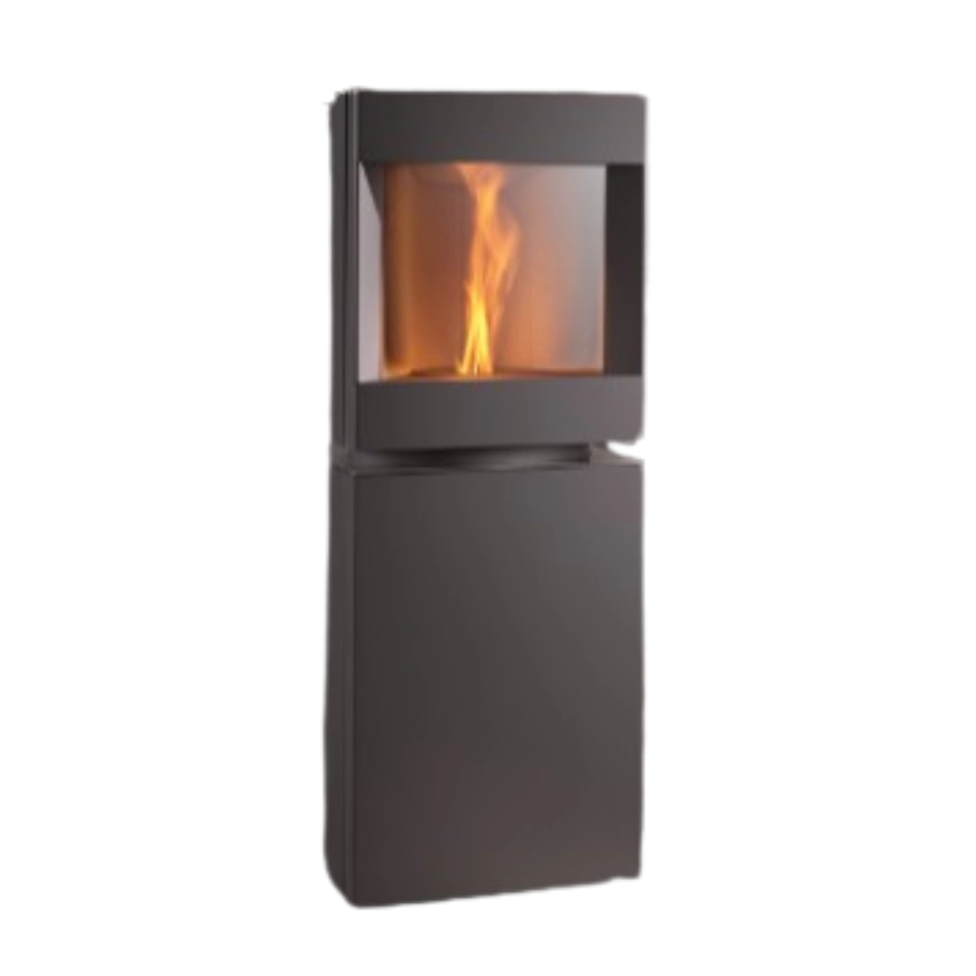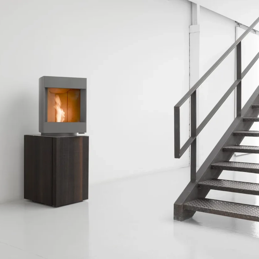 Stûv sP10 är en pelletskamin i premiumklass – där briljant design möter tyst teknik. Den är uppdelad i två smarta sektioner: upptill syns en äkta eldlåga som ger en naturlig eldupplevelse, medan pelletsförråd och teknik är diskret integrerade i den nedre delen.