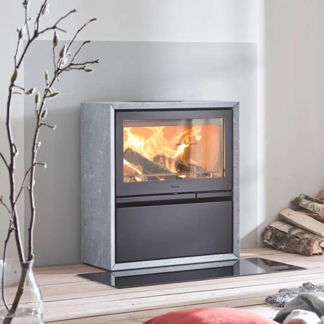 Contura 320T kombinerar effektiv uppvärmning med tidlös design och exklusiva naturmaterial. Med sin omramning i äkta täljsten får varje kamin ett unikt utseende – täljstenens naturliga ådring gör varje modell helt personlig. Dessutom har materialet värmelagrande egenskaper som gör att kaminen fortsätter att avge behaglig värme långt efter att elden har slocknat.