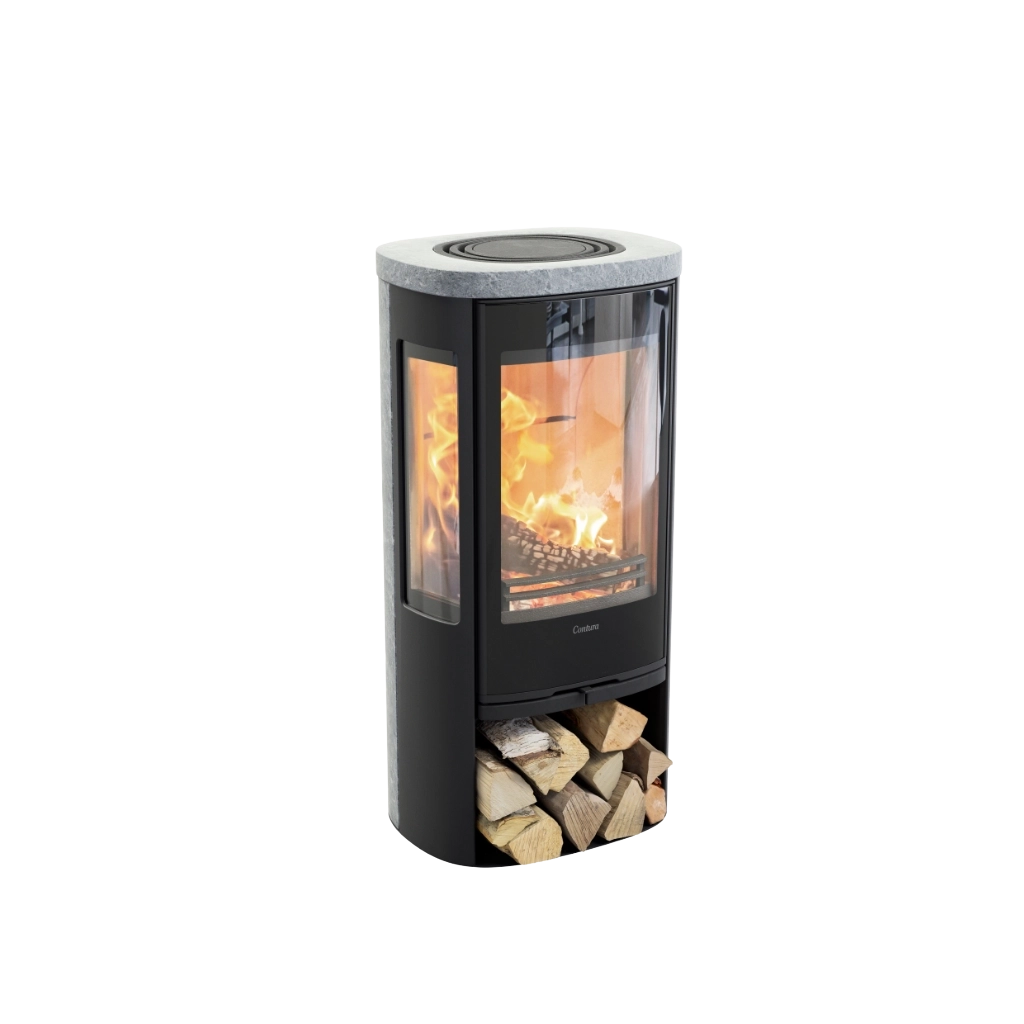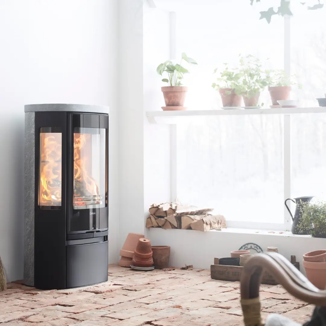 Contura 856TG är en stilren täljstenskamin som förenar modern design med naturlig värmelagring. De generösa sidoglasen och den eleganta glasluckan ger dig en nästan 180-gradig vy över elden, samtidigt som omramningen i äkta täljsten sprider behaglig värme långt efter att lågorna slocknat.