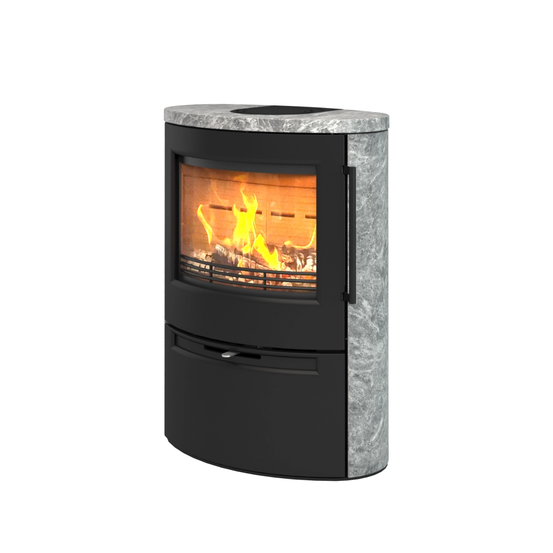 Täljstenen har värmelagrande egenskaper som bevarar och sprider värmen i timmar efter att elden slocknat. Det gör TT55RS till ett smart val både ur ett estetiskt och energieffektivt perspektiv.